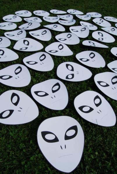 Here's a photo showing some of the 50 alien masks we'll have ready for the big party...