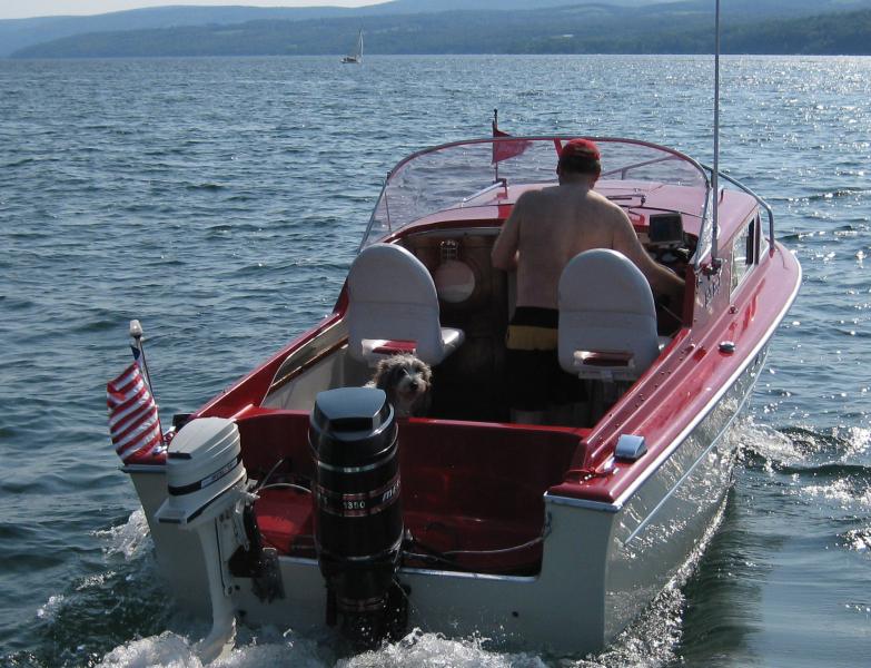 PS Some white will really "set off" the red by the way,a white splashwell can break up the red blob and highlights any red on a motor....any extra red may make a nice stripe which ties it all together.You got nicer chrome than any of my hulls so all red may work for you.