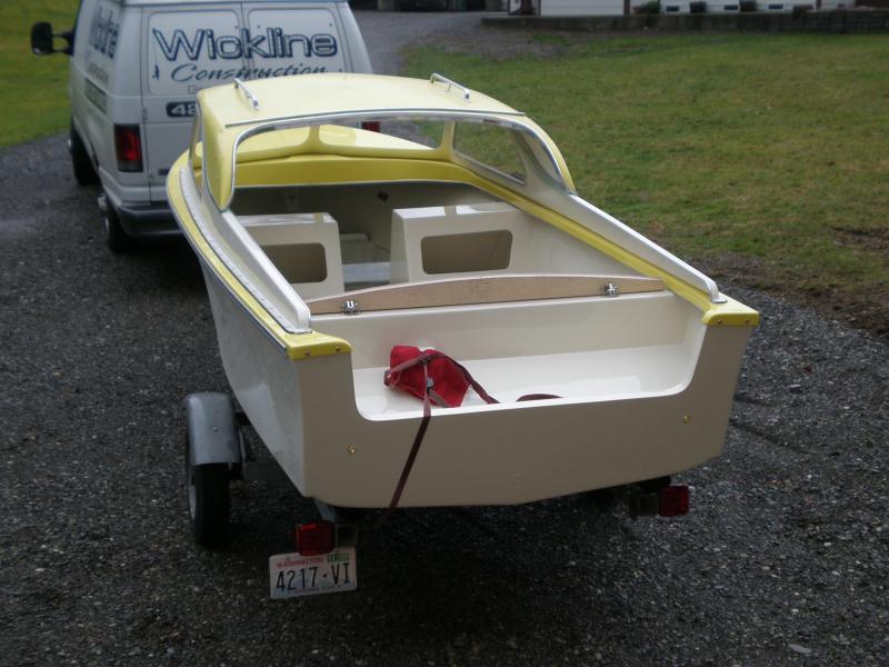 It looks great. I am a little surprised that you are using such a big motor. I hope that you beefed up the transom. I have a Merc. 650 short shaft on my 57 Bellboy convertable. Have you ever rode in one before? I have owned my boat for almost 25 years with a lot of experience in all kinds of water conditions. They don't ride very well in rough water because of the flat bottom. It will be nice to see it on the water.