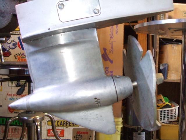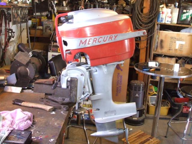 I can see it from 1/4 mile away! I steer Cheryl in that direction as I am very curious. As we get closer, I can see it is an old merc.:GoodJob: As I get even closer, I see that it is an old merc with a quicksilver racing tower and foot!!