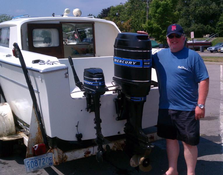 Well, after an exhausting week of 70+ hours of labor, we finally got the 1960 BB 404 Sedan back into he water for some sea trails. After some frustrating issues with Interlux Perfection Royal Blue for the deck, we decided that the boat would look better all Oyster White. All the blue was sanded off and the deck portion was re-primed with Interlux 404 primer. Two coats of the Oyster White were applied - this time with no issues. The boat looks fantastic in this color. I wish we had been able to take some shots of both BellBoys in the water together but we were under time constraints. Not pictured is the beautiful white helm with blue accented cushions, new chrome destroyer steering wheel, new beige instruments and a general interior doll-up. Its looking great! Here are some pics...