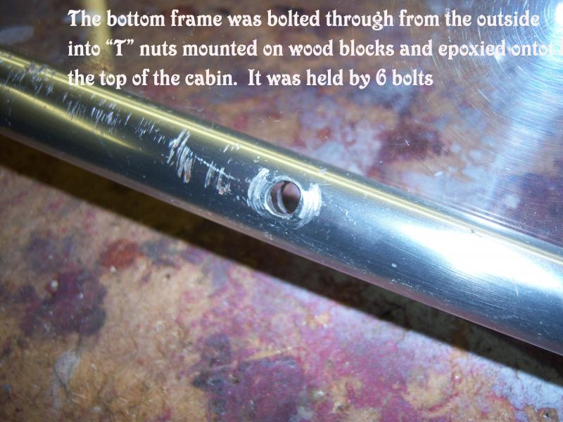 Ok, Tim here is what we have. I typed captions on each picture to point out exactly what is going on. What I am dissatisfied with is the sloppy way in which the windshield "fits" against the cabin top with the cut off bolts blocking the bottom frame from securely snugging up to the top of the cabin. I though I might use a Dremel cut off wheel and cut half of the nuts away to make it fit better. If you have a better way of securing the bottom of the glass to THIS frame, I am open to any ideas. I also thought it might look neater to have the bolts protruding out from the inside and to secure the frame with cap nuts?