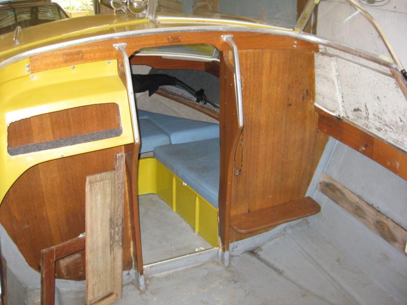 As you can see we purchased Tim Mattsons Seafair. We told Tim that we were going to gut the boat and rebuild it, its just we do with projects. We just completed a total rebuild in May of the 1965 24' Airstream which is our third vintage trailer rebuild. Our plans are to change the color from yellow to light green the same color that was an option in 1959. It will also match the 1965 Suburban that I took down to bare metal with extensive metal replacement and paint.