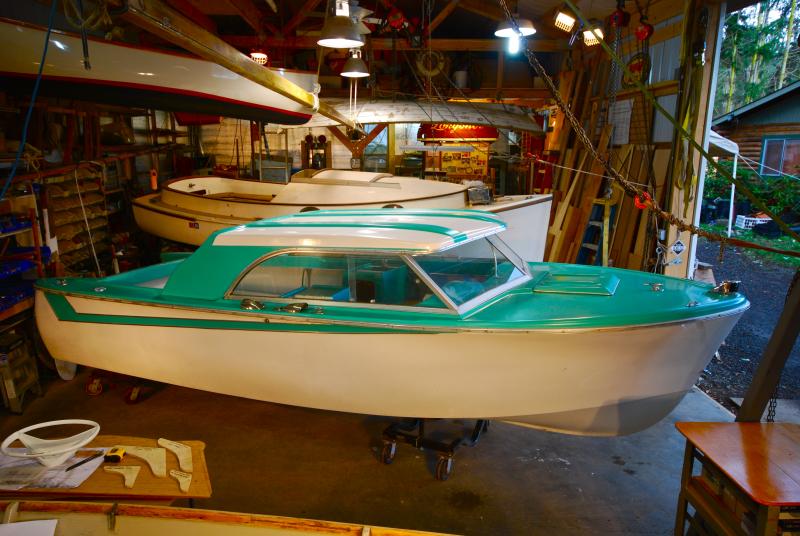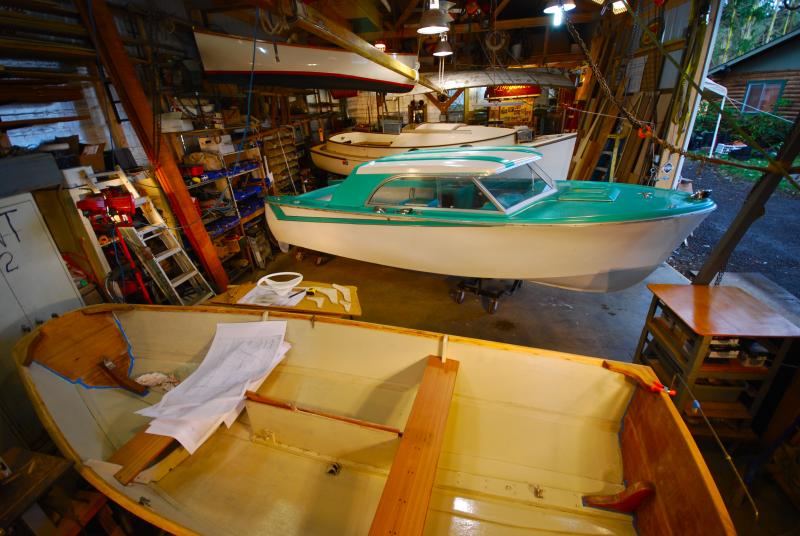 The attached photos show the boat during its brief dip in Olympia; at home and inside the shop this afternoon.
