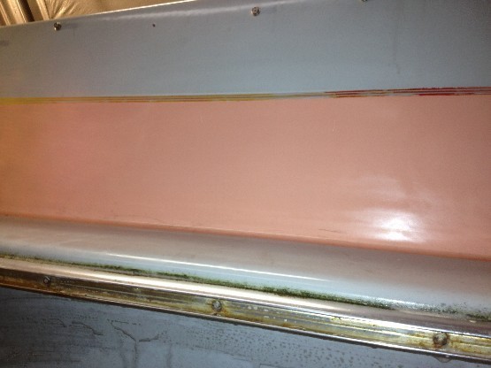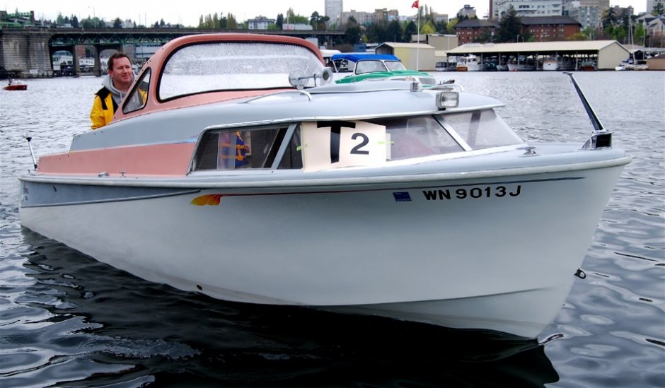 Joe, What i been told , she was a "Pink" boat with a little grey at one time. Under the rubrail i can see little parts what was the "pink" hull. The person GregS got it from around Tacoma , as the story goes ,it was his Uncle that re-gel coated the hull over in Eastern Washington when he own it. It does not look like the deck and cabin roof was re-gelcoated and just painted. Yea, i will keep this windshield on her.And yes, i have been dump on with water a few times in the past. Once on the Columbia river by Sand Island and a few other times. The thing that i'am happy about is the lexan or whatever is in great shape as well as the cabin windows ! Will get some canvas later on next summer with a Bimini cover. Chuck