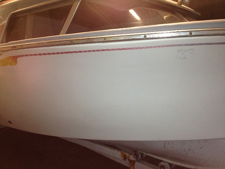 Hey Steve, Yes that windshield will be staying ! I do need to take it over to the glass place so they can kind of put the rubber about 1 and a half feet back in the groove on the frame. Rather have them to it as they might have a special tool and if they break it ......well. I just went out with a bucket of hot water with boat soap with the brush just to wash a few area's to see what it would come out like. Then being it is freezing out there i wipe it off with a towel. Not bad with just a little hot water and soap.There are a few rusty bolts on the roof that need to be taken out. Here's a few picture's that are little bit hard to see but considering the weather. What i was looking for was how smooth the paint was even before rubbing it out and adding polish later. The cabins windows look good too. This will be the first thing i will do and then move on to the cabin and cockpit.Chuck