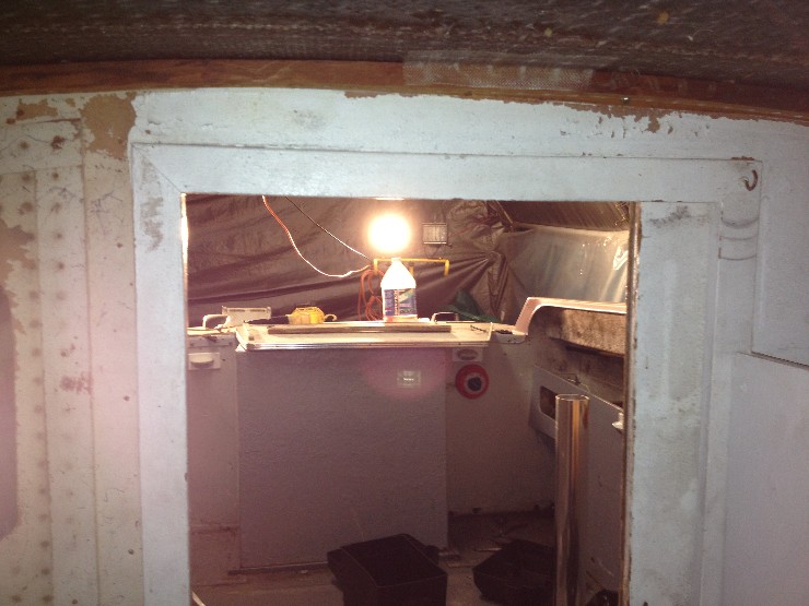 What I've decided to do on the 404 is to keep the sliding door, but place it on the inside of the bulkhead. This will allow me to mount a cabinet on the outside of the bulkhead. The trick is, I'm also going to put a false bulkhead in on the inside. This will hold the pocket door and still allow me to mount the sink on the inside. It will be a bit of work, but should maximize the available 'hanging' space on the bulkhead. Because the door will be on a slider, it will be independent from the inner bulkhead and I should be able to screw the whole thing on the inside so that I can pull it apart for maintenance as needed.