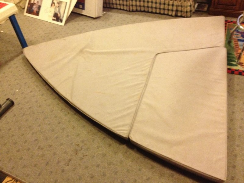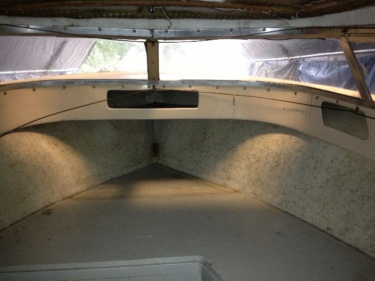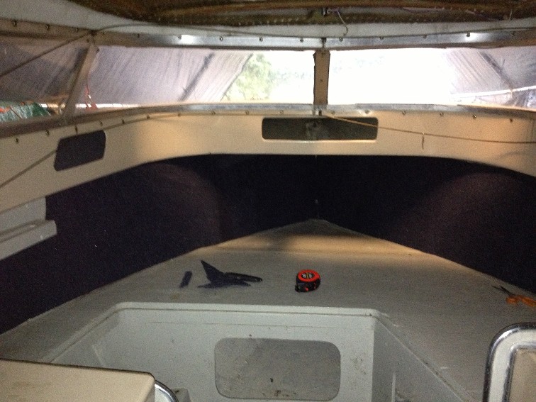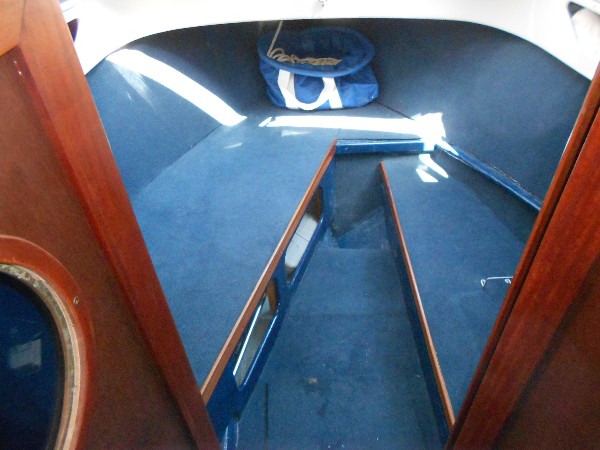 Going out today to finish inside the cabin after carpeting the hull side walls (blue) and into the storage slots area's (grey) above the blue carpeting.The rest of the cabin bulkhead wall will be painted a off-white with a "stone" look to it that will hides the imperfections in the old fiberglass from the 50's. The mattress is in great shape ! Then after that a little repair in the floor and moving out into the cockpit area that should take about a week or so. Chuck