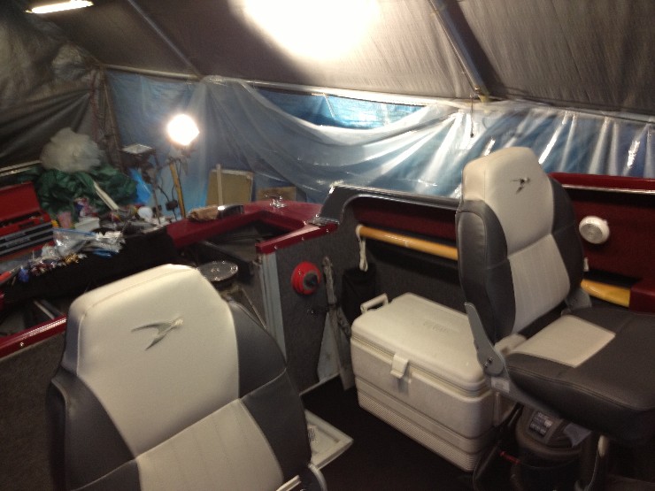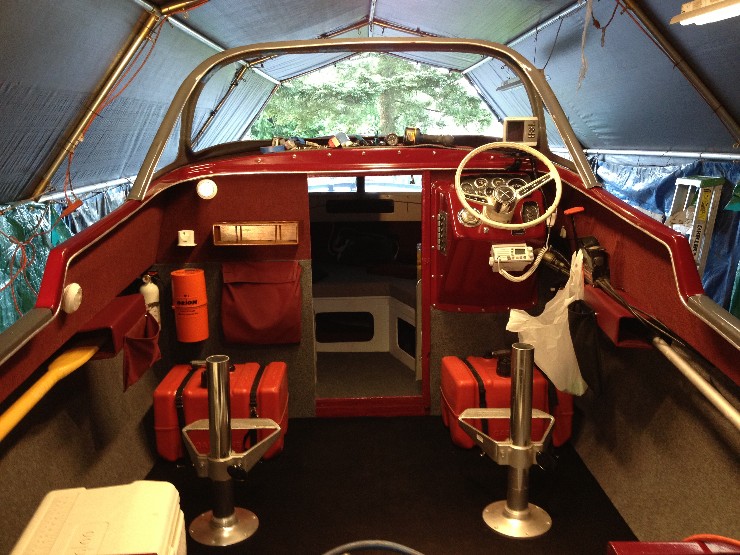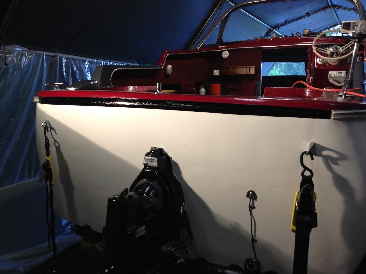 I had to repaint the stripes on the boat so now the windshield frame is just not quite the same shade. Done