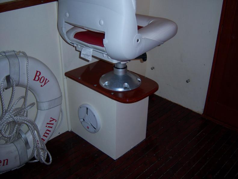 I have some progress to report now. The pedestal boxes have been fitted with speakers and the starboard box has the red led light for night cruising. I have laid the floor in the cabin and coated it with epoxy. When that cures I will caulk with Boatlife black which takes 10 days to cure!
