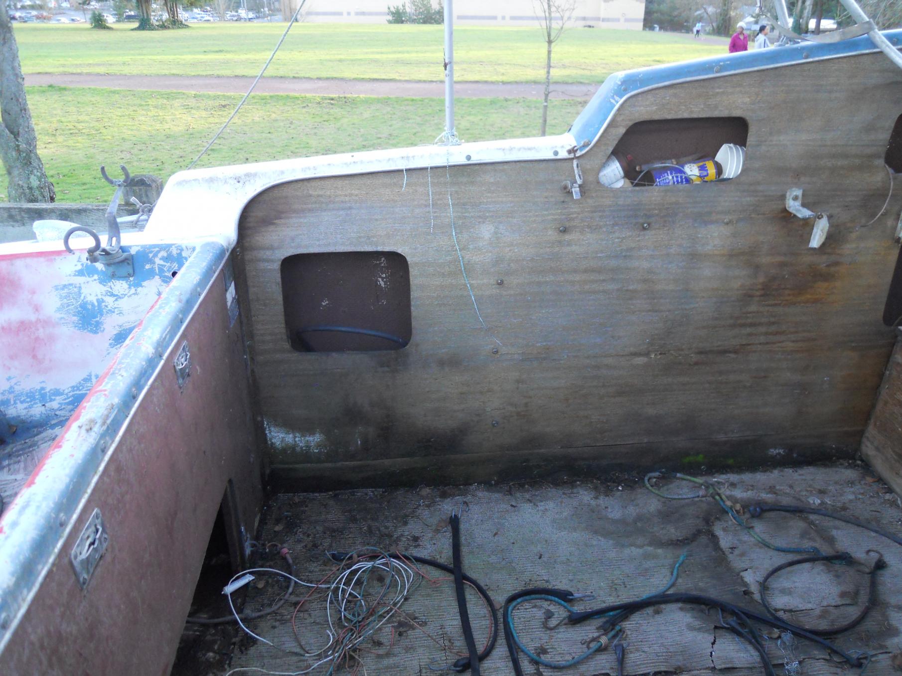 If you're referring to the side panel, that looks like an owner installed piece. The wood in that side panel appears to be 1/4 mahogany, Skagit would have used doug fir marine grade. Skagit custom built each 20 footer, adding things like stoves, cabinets to a customer's specs, in 56-58 models, mostly. We've seen a few that were altered such as the one in your pic after it left the factory. Very few if any appear to be custom after 1958, as they were trying to control costs. The vertical bulkhead to the left in the pic was 3/8s or 1/2 doug fir marine grade.
