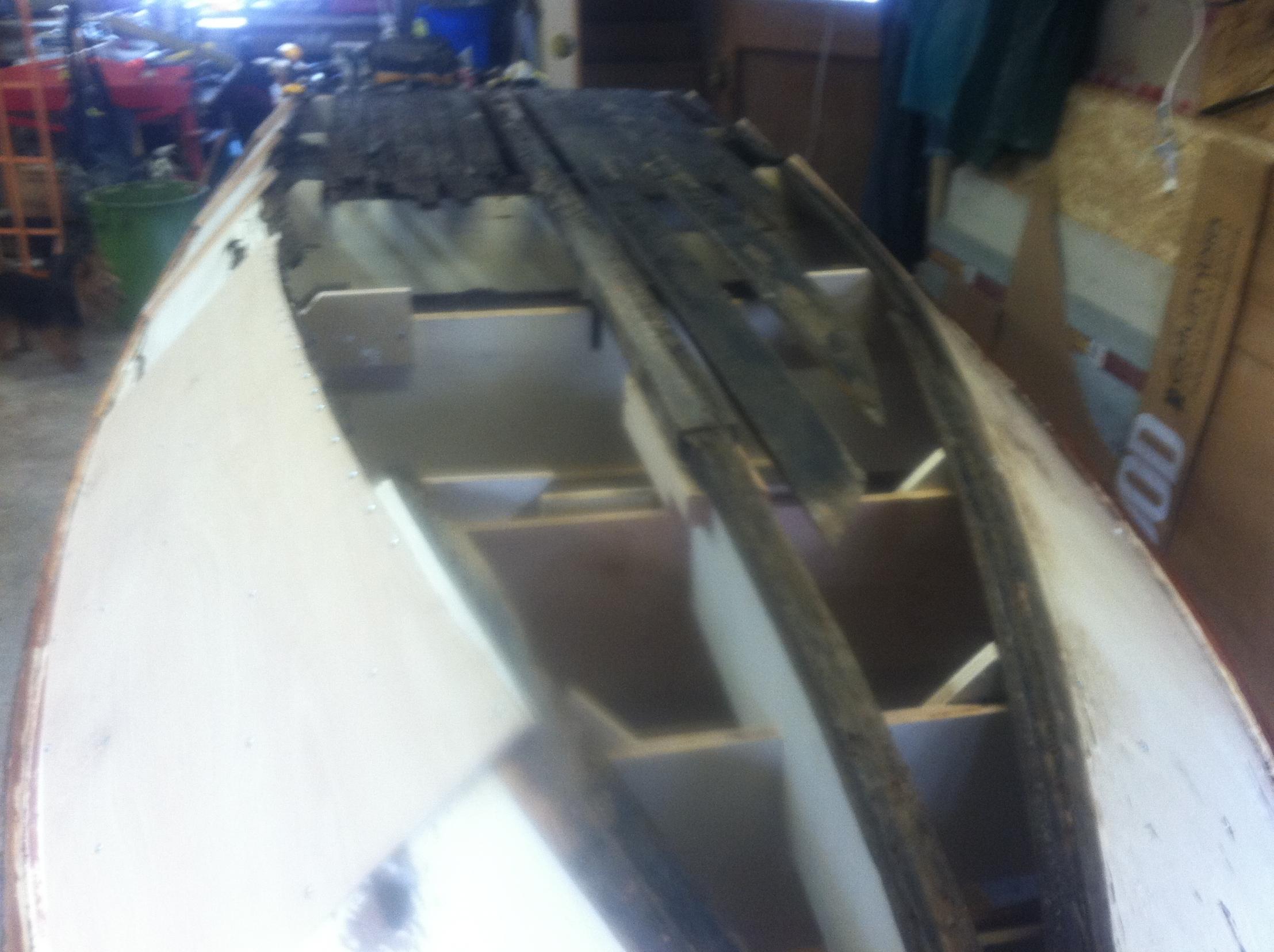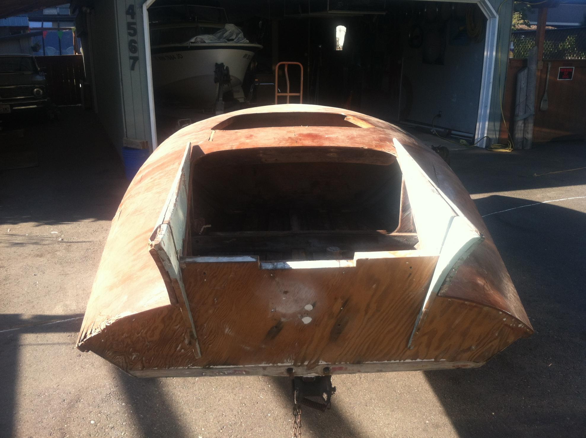 I only know of two other Darts one of which the person does not know what they have. The person I got the boat from road in it in 1958 and had picked up the boat about 20 years ago. At some time he stored it outside under a tarp and the rest is history. You will see in the following posts the process to reclaim this boat. The only thing original in the rebuild is the transom knee; four deck braces and pads; and the transom piece with the hull ID numbers.