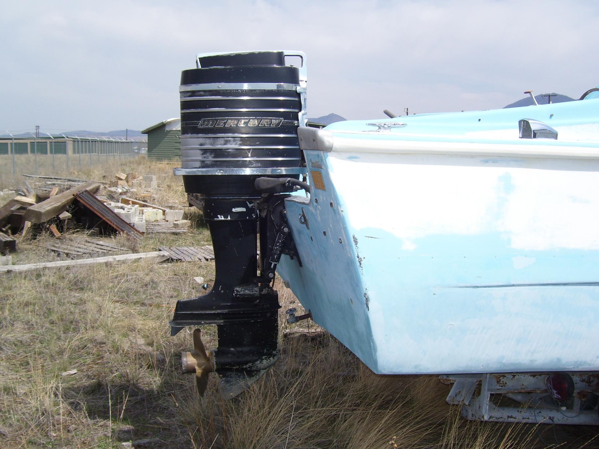 This what she looks like as we speak. I will post more pictures after cleaning her up and then more after some advice on stripping her down for repair and restore. So, what do ya think? How about that Mercury 1000! I think she's a keeper overall and I will do everything in my power to get her back up and running.