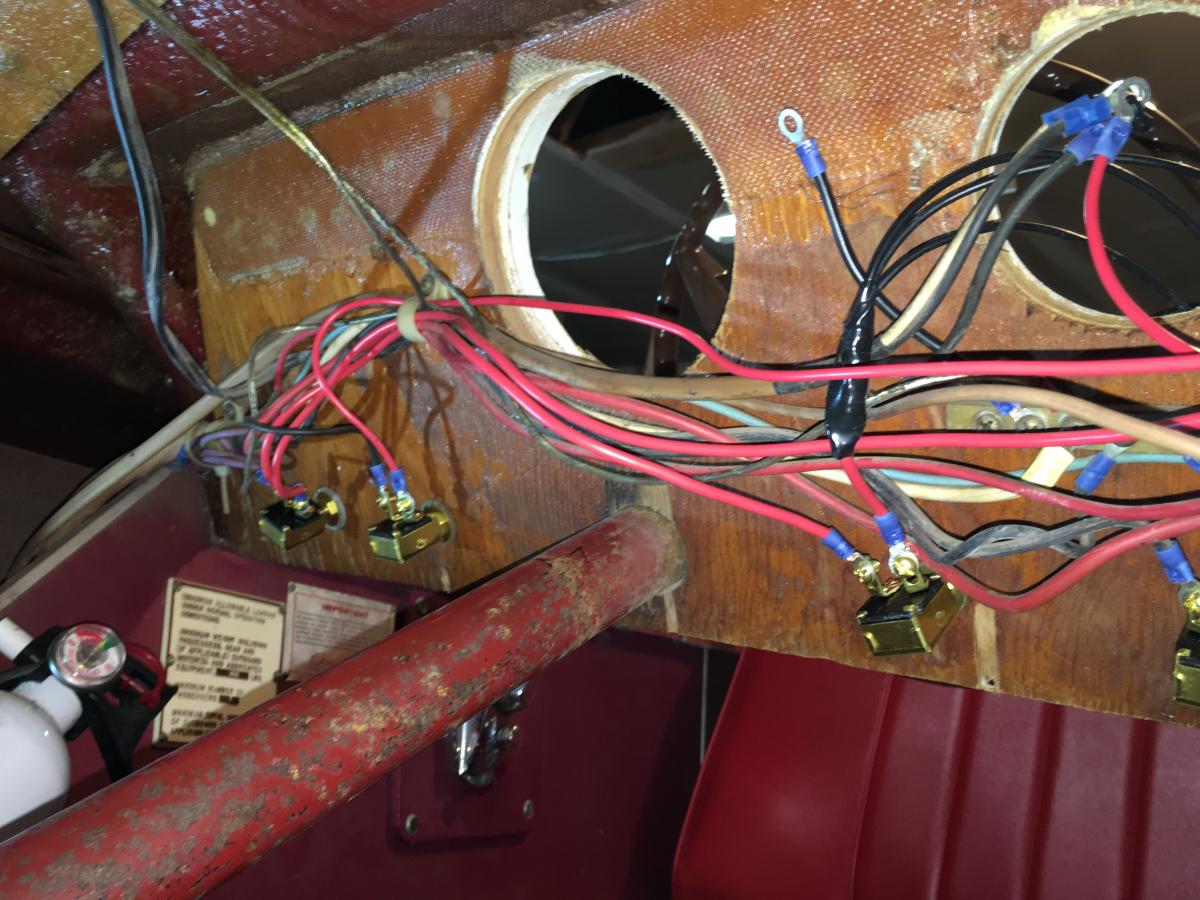 I am also continuing the mechanical work as I am completely rewiring everything behind the dash and replacing all the switches (I have two that stopped functioning last summer) I was able to find NOS "hourglass" knobs in near perfect condition on EBay that fit onto new push-pull switches from Redden Marine.