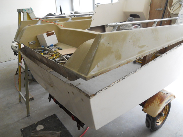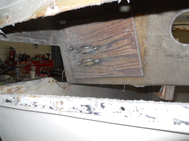 greetings just finished my transom,,, made out of 1.5 in cossa board blue water 26 daddoed out the area for the splash well betwween the rear of the boat tub leaving about 1.25inch thick going to use 3m 5200 sealent between top & bottom halfs of the boat befor installing the rub rail ,,,,,,drilled core samples on the stringers seams to be dry & hard no soft wood so ill leave it for now,,,,, see progress pictures