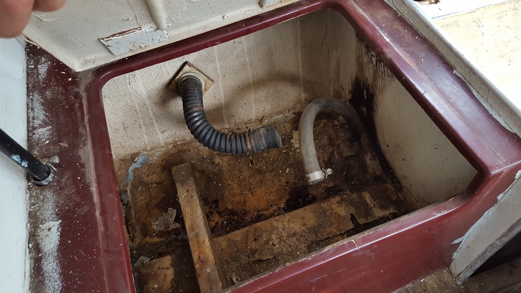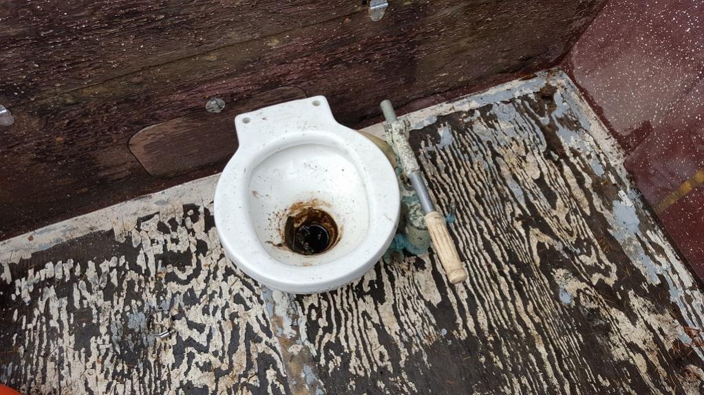 I washed the boat too and waxed a few sections of it. I'm not entirely ready to dive into the whole boat with the detail work but I couldn't resist some small areas. I also removed the toilet and gagged and nearly puked a few times. Pictures will indicate why...