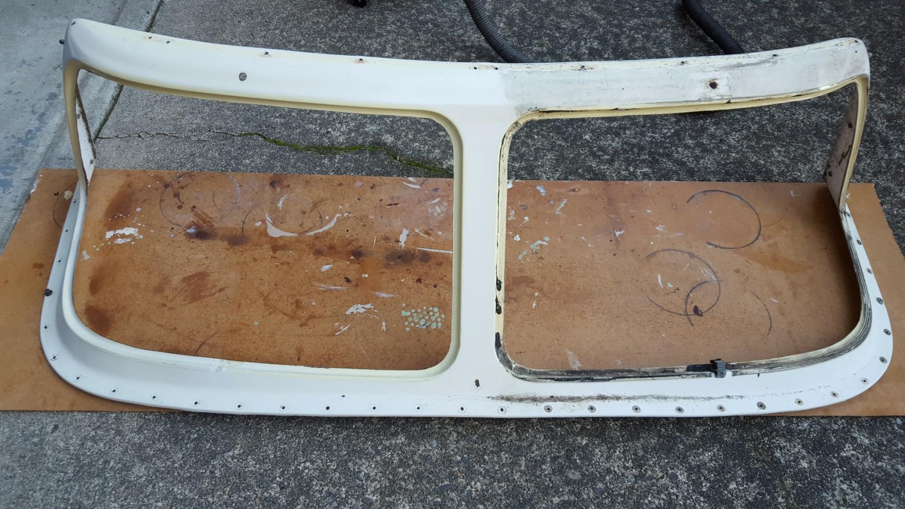 Still more work to do. Structurally the frame seems strong, there are several cracks in the gelcoat and a couple of holes to fill. The real prep is the window sills so I can get a good fit on the windows.