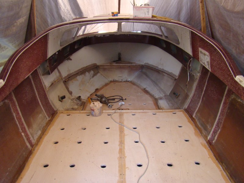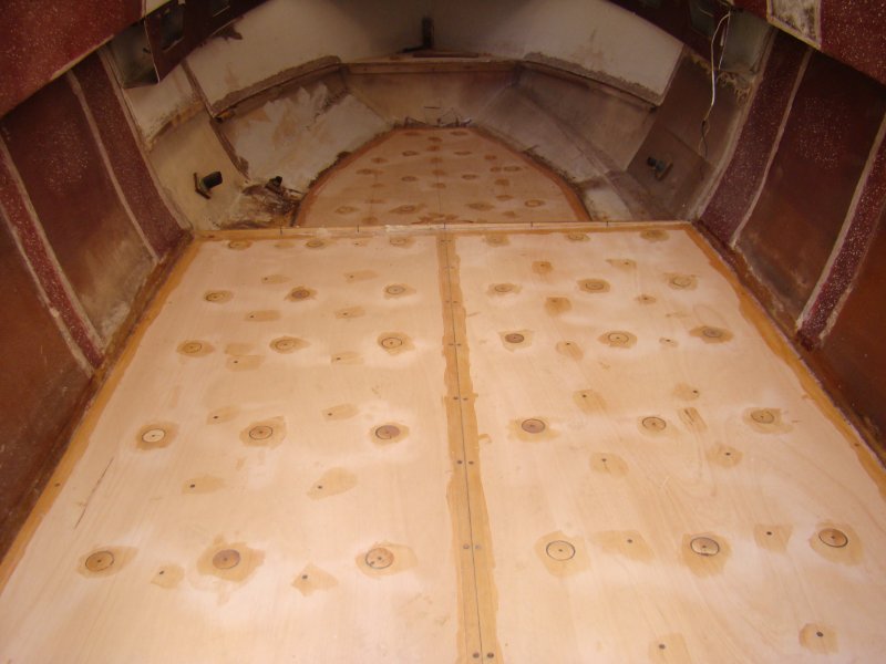 Once get those plugs going back in, I will show you the process I use. Once those are glassed into the holes, I think lay down some 6oz fiberglass cloth that covers the floor.
