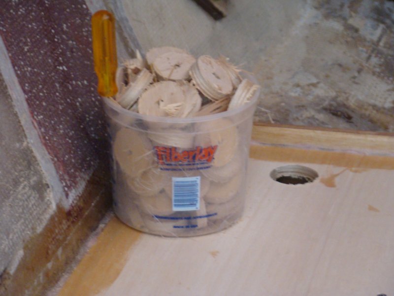 Almost forgot. That bucket of what I drilled out for each hole, those will go back into the foaming holes.