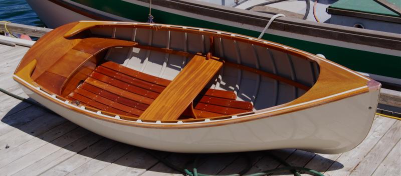 Here are "Before" and "After" views of the little dinghy, built in British Columbia by the Chappelle Brothers. (Still don't know anything about the builders, but they designed a sweet little dinghy!)