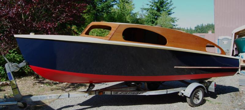 In the process I had a brief outdoors view of the 1955 Lady Clipper 18 express (photos below), before tucking it back under cover. The boat is missing its mahogany-framed windshield (off for stripping and varnish), but when I've had time to apply maybe one more coat of paint all-around, I'll reinstall the windshield, rubrail trim, deck hardware, etc.