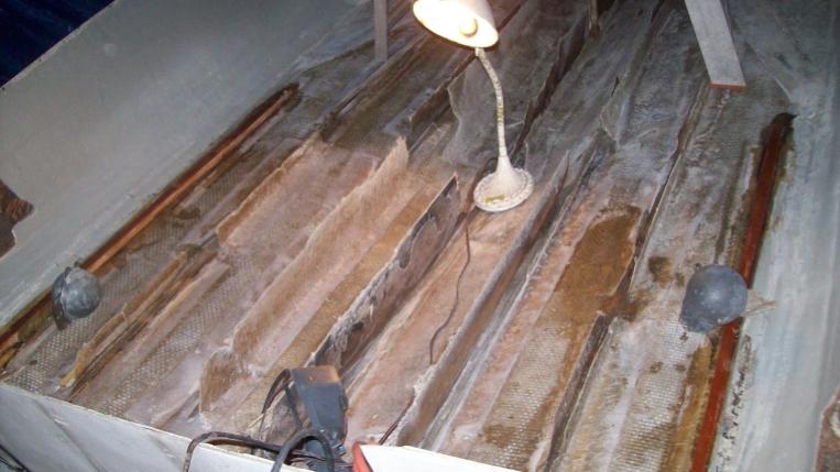 I think the hulls were put together with an Asbestos laced gap filler so I`m leaving it alone for the most part unless really loose.Wet it down to keep it somewhat safer.