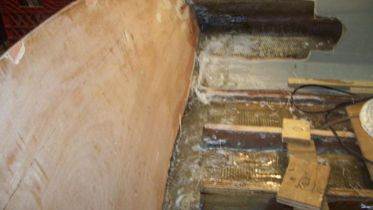 That will get layered with woven,Thickened resin until a semi flat spot in which to bolt on a big motor to.