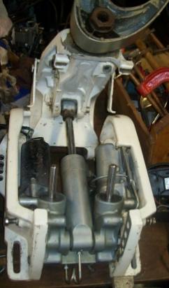 Then the Splashwell morphing begins,now a longshaft hull......motor build-up now in progress,basically a newer trim unit wedged into an older frame to receive the mid 70`s style mid-section I intend to use.