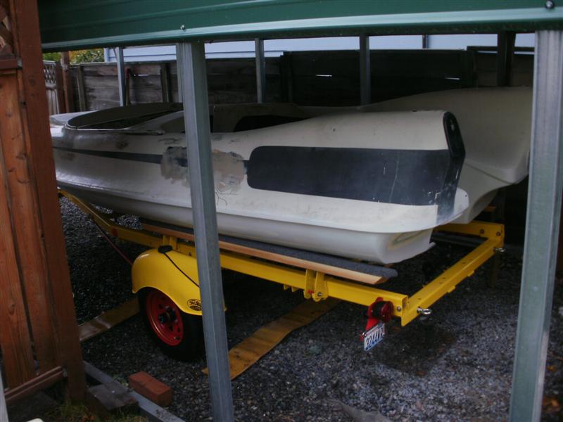 Probably let it set for a couple weeks since I have the trailer sitting in the shop and there is no hurry to get it out of the way. When we took it off the trailer and turned it over it was like an Amish barn raising, got all the neighbors over and lifted it off and walked it backwards and pulled the trailer out . When we turned it over there wasn't much to grab a hold of so this trip should be alot easier going the other way. Last time we had no worries about damage but this time we will have blankets and foam down for the turn. I'll give you advance notice - We can always use another strong back -so bring Branden lol