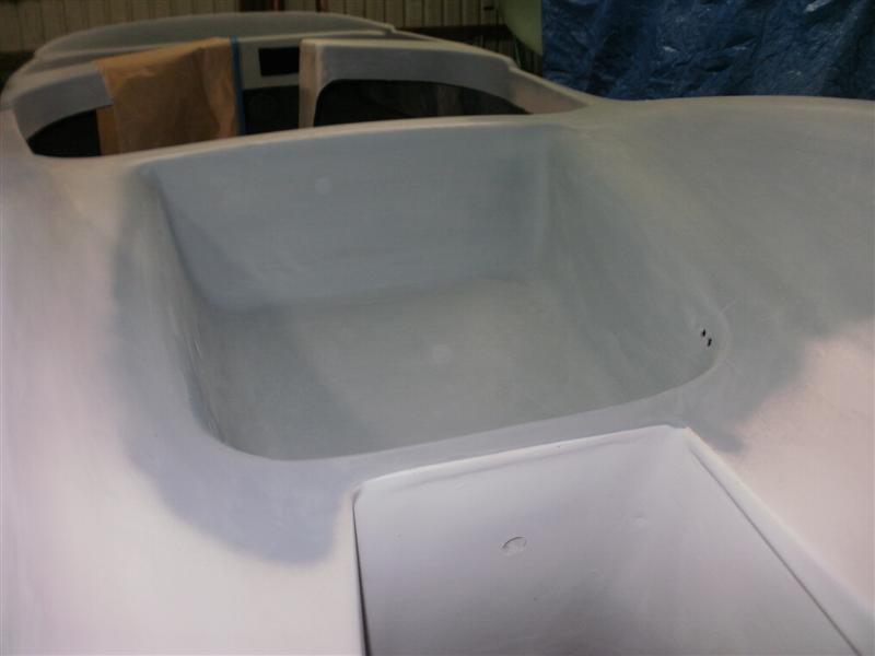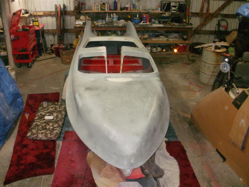 Been over the boat about 3 times and getting closer to having all the divits and holes filled. Little more work left on the inside by the seats and one last go over before the final coat of primer. Going to be Gloss white with a bright Red stripe on the outside . Had the pro from Dover out to give an inspection (Melanie ) got a Nod and an "Almost there " from her ! Lots of work - can't even imagine how many hours of Glassing - filling - sanding - putty - Etc I have on this beast ! There is light at the end of the tunnel - Hope it's not the on-coming train !!