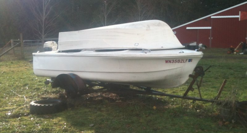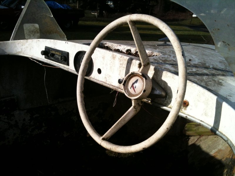 Good floor, good transom. Has a windshield frame that I took from an Elgin that looked identical. With the new Plex, its not hard to make up windshields any longer. Its also setting on a trailer that has the Elgin tag on it.
