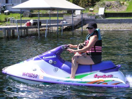 1993 Kawasaki jet ski on a 1998 Spirit trailer. Oil injection system, no mixing. Not sure of engine size, but this was a racing bike in it's day.