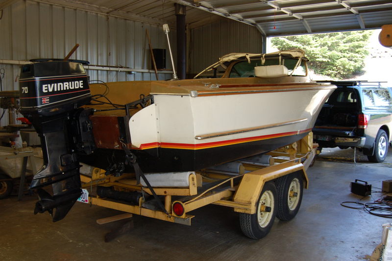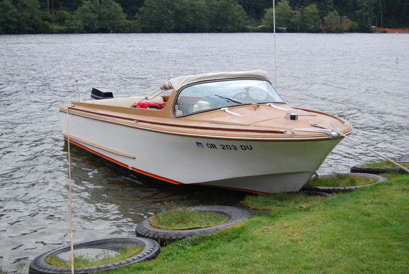1956 Glasspar Mariner for Sale. This is a very rare boat. The only known running Mariner in the country. My Father in-law was a Glasspar Dealer and purchased the boat then. Never stored outside. Powered by 1993 70 hp Evenrude motor with 150 hours on it. Comes with Tach, Hour, Trim, Voltage gauges and full Canvas. Note in pictures wood gunnels and wood with metal trim rub rail. Price is $4,200. There is a large area to make great for fishing. Would consider a trade for 1967 VW Bug. Call Tom 541-336-1726.
