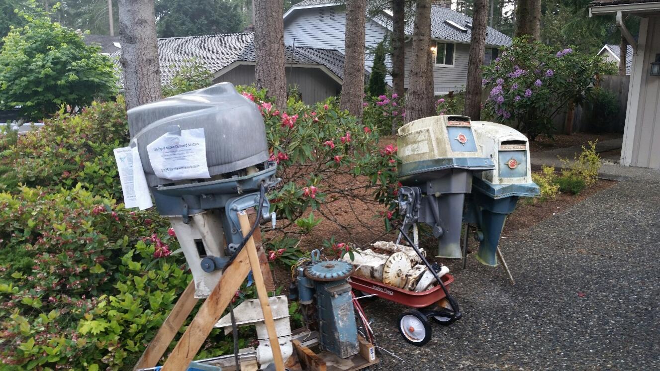 55 hp 4 stroke Outboard Motors- 1 complete motor, (controls and prop included), Second complete motor (minus controls and propeller) Spare Parts for almost a third complete motor, Engine stand included . I have stored these for 5 years and realize I am never going to have the time, or motivation to restore. Make me an office or see on Craigs list. Thanks!