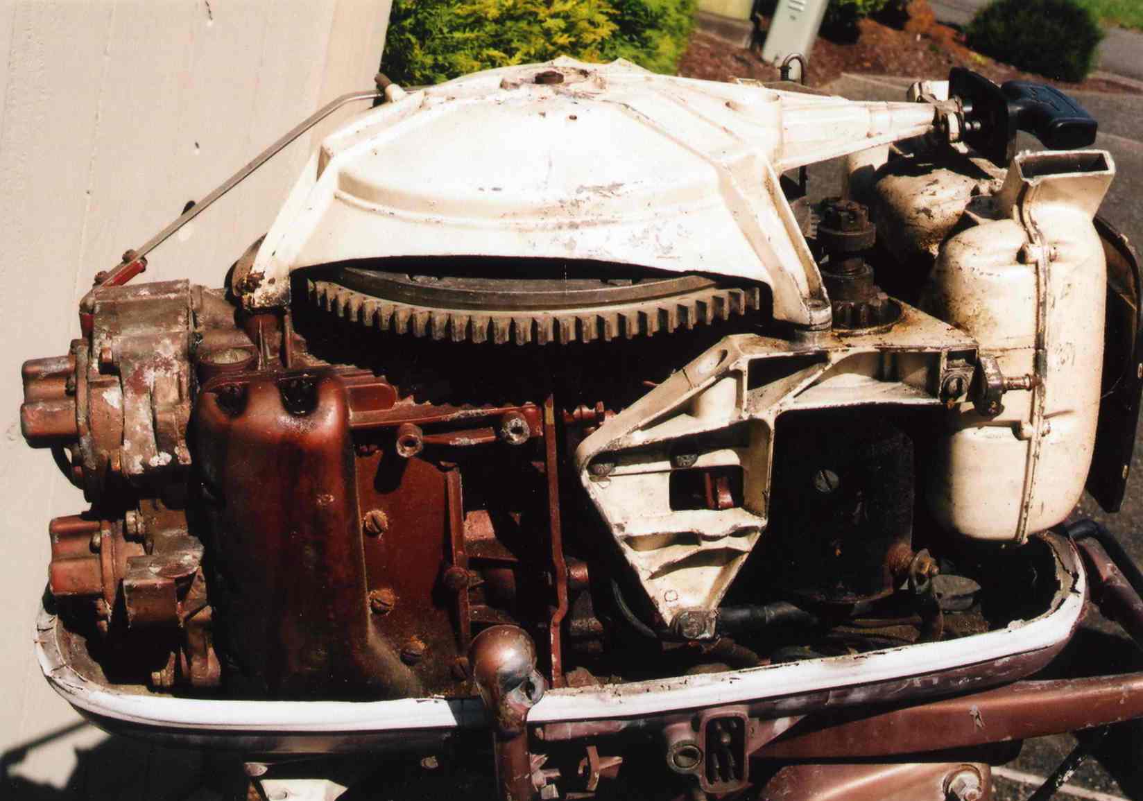 P1010303.JPGjohnson58350006.jpgjohnson58350004.jpgjohnson58350002.jpgThink this is a 1957 35, not in running condition and I'd call it a parts motor. Several bolts are frozen but otherwise all there. Includes the shift and cables ! badge on front of cowl in bad, cracked condition. Somebody out there needs this engine, might even be a good project ?