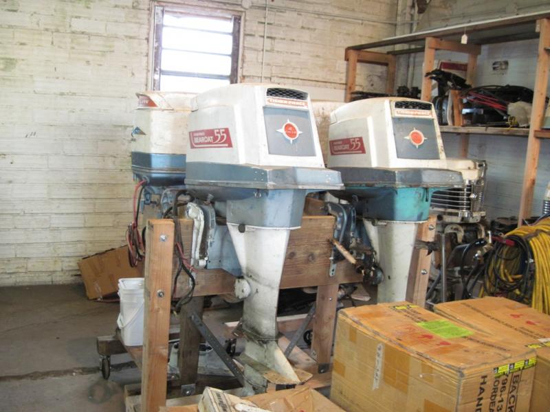 2 40hp Johnsons, several smaller Old kickers for a total of 12