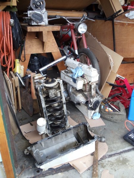 I am trying to make some room in my crammed full one car garage to take one of the extra long block homelites I have and remove the pan etc. just for some practice and to see what the gaskets are suppose to look like etc. I might as well make use of them.