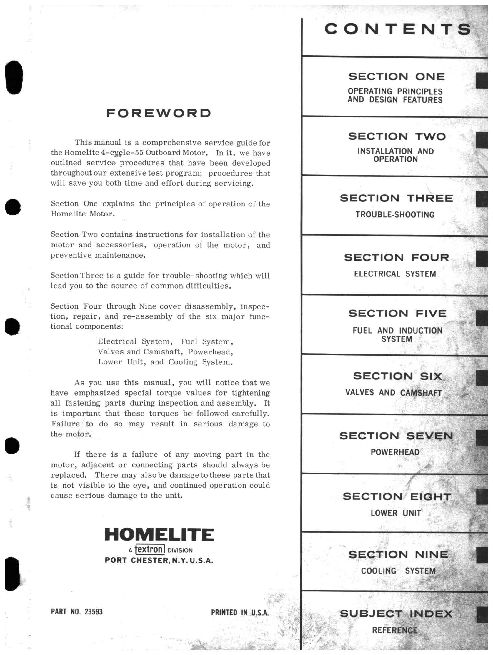 My dad had a poor and degrading thermopaper copy of a 55 manual, made from a long lost neighbor's manual. I have searched for a copy of the manual for years with no luck. This summer I inquired with a technician at a Michigan marina that used to sell Bearcat/Whaler. He went to a back room and pulled out his old dusty, greasy paper manuals and there it was, so I believe it was a manual available to technicians rather than the general public. He graciously had an assistant scan and email each page to me. Unfortunately they were large image files, and a couple pages were missing. I’ve converted each file to PDF and combined them, inserting scans of my poor quality version for the missing pages. I find this 77 page manual more helpful than the commonly available one and want to make it available to other Bearcat fans, and this seems to be the most active Bearcat forum. The contents page is posted here. The full file (126 Mb) is hosted on a work server, but only for one week before it is automatically deleted. It can be downloaded at the address below. It takes a couple minutes to download so be patient. Do others have this manual?