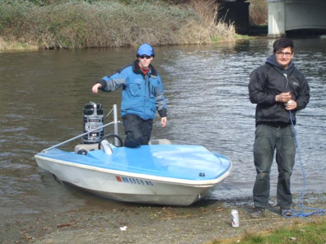 What a great day! Started out with breakfast at IHOP with members Jack & Kathy and Jay & Terra. Then off to the launch at Sammamish. 3 boats put in for the run down the slough. Brian Flaherty and his friend in a Havoc speedboat with a 100 merc, Tim Matson and friend in a Yamaha 55 powered G3, and me in my merc powered 14' Texas Maid fishing boat. Several support boats also put in. I guess some had mechanical gremlins, but several escorted us to the far end of the lake. I would like to thank Chuck for chauffeuring my wife in the big Farralon. Cheryl and I had decided that my boat was just too small for both of us, so I converted it back to a single seater. I had alot of fun in my little aluminum boat. The willows were a challenge and I got stuck once on a branch and had to scramble to get loose. Moving to the nose of the boat and using a paddle seemed to work somewhat for steering. The 3 of us had some GREAT runs down the "river". I was right behind Tim when he decided to turn left, which turned him right and up the bank into the brush!. That's a memory I will cherish for ever! Not often you get to witness a boat wreck! Of course then we had to deal with the law. Seems there had been some complaints about us. The Game warden was laying for us under a bridge just up from Bothell. He was pretty cool, although I don't think Tim agrees! Pretty mellow driving the rest of the way after our run in with the law.Brian and I both pulled out at Kenmore. I had planned on going the whole way, but with the strong winds and the truck/trailer/wife logistics, I called it a day. Another special thanks to Greg (Slo-Mo) for piloting my truck from Sammamish to Kenmore, Thanks Bud! Congratulations to Tim and his copilot for surviving the day (3 times on the bank!), the law and the water conditions, all with backwards steering!! Here's some pictures!