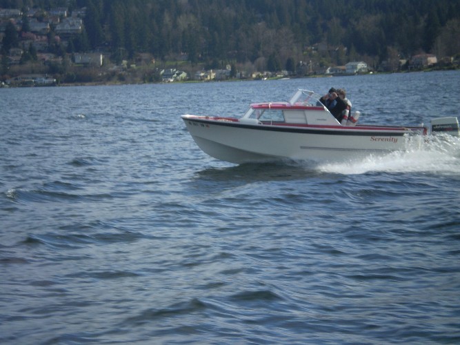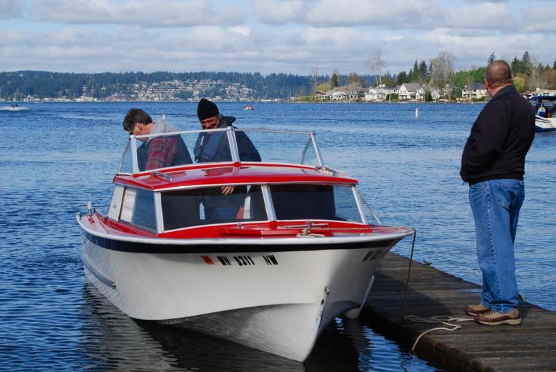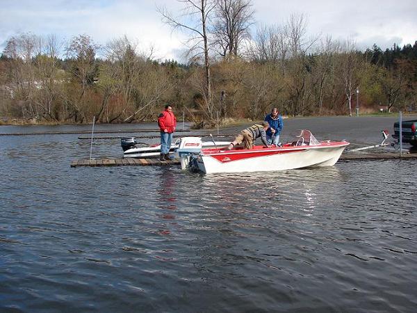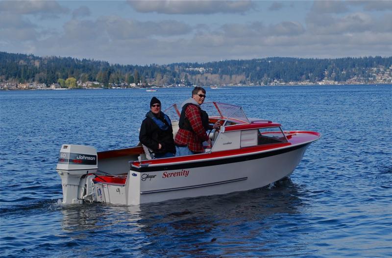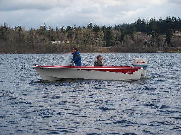 My appearance at Lake Sammamish was brief, since the outboard wouldn't run for more than 2 seconds at a time. Thanks to Steve Kiesel and Tim McCrain for offering to give me a ride...but I was happy to head back home since I had to get a boat ready to swap today (for another old boat, naturally).