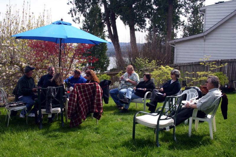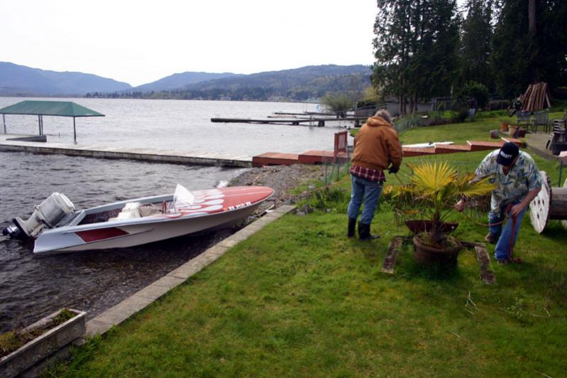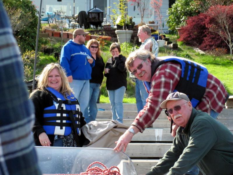 Here's a few photos: The crowd at the dock, Gordon and Jack apparently mooring Gordon's Stillettoto a potted plant, the lunch crowd and some folks at the dock.