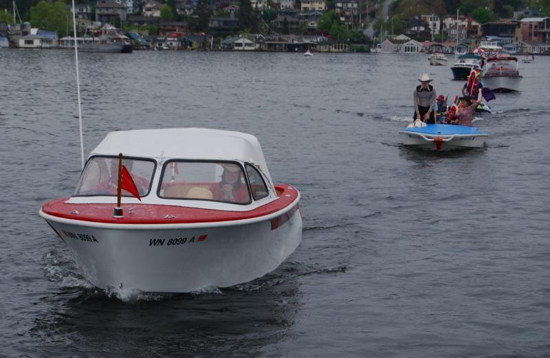 As most of you know, Seattle's Opening Day Parade is a huge public event, with thousands of spectators lining the parade route and/or watching from boats tied to a log boom along the route through the Montlake Cut and into Union Bay, just east of Portage Bay in the Lake Washington Ship Canal.