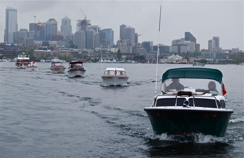 NWCBC's fleet will gather before the parade at the south end of Lake Union, at the west end of South Lake Union Park, starting between 10 and 11 a.m. If you are launching your boat anywhere in Lake Washington (Magnuson Park, Coulon Park or next to the East Channel Bridge of I-90), you'll need to make your way through the Montlake Cut westbound by not later than 9:30 a.m. on May 1, since parade officials close the Cut to all marine traffic at 9:40 a.m. sharp, in order to begin crew races that happen before the parade.