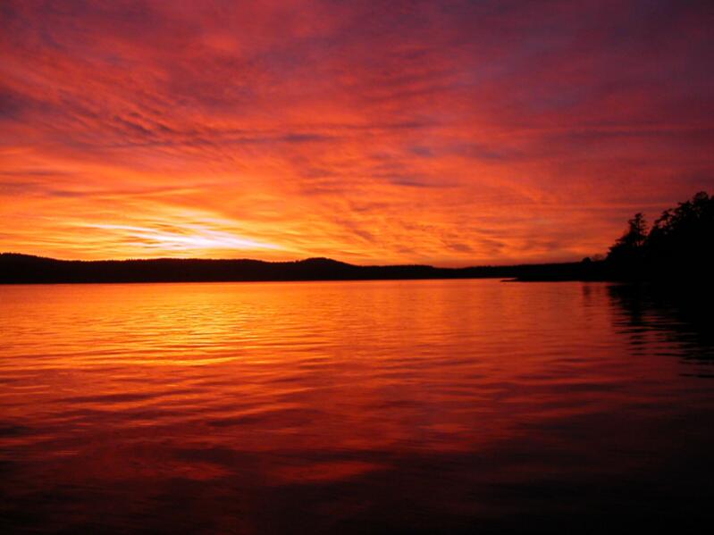 Wind let up about 5 and by six San Juan Channel was flat calm.