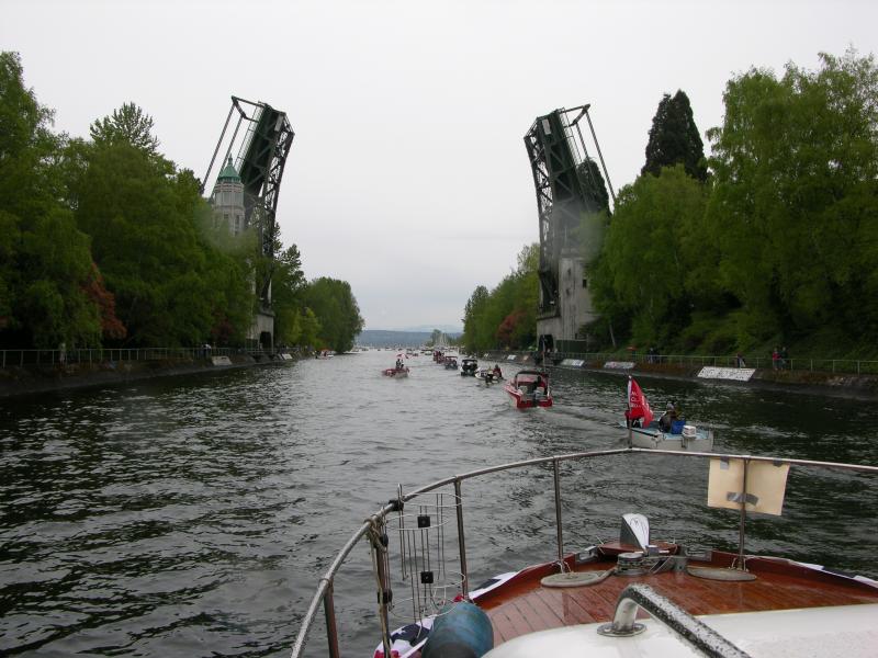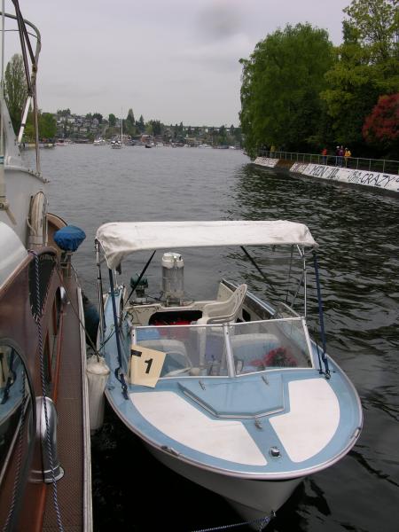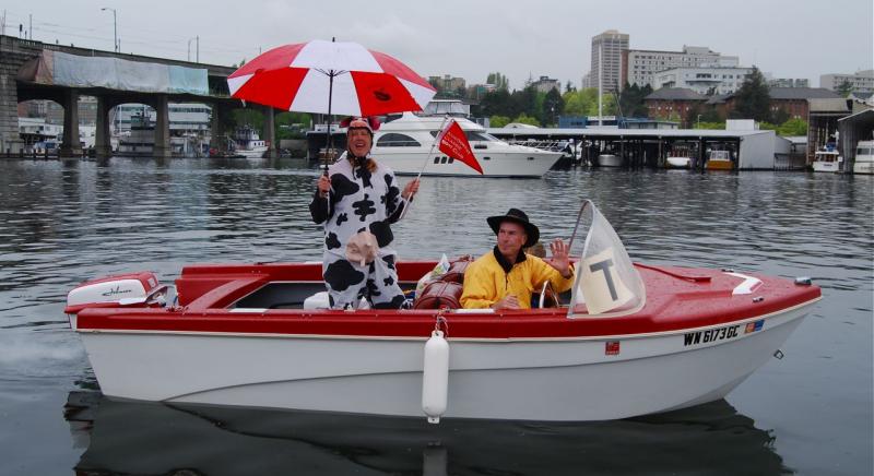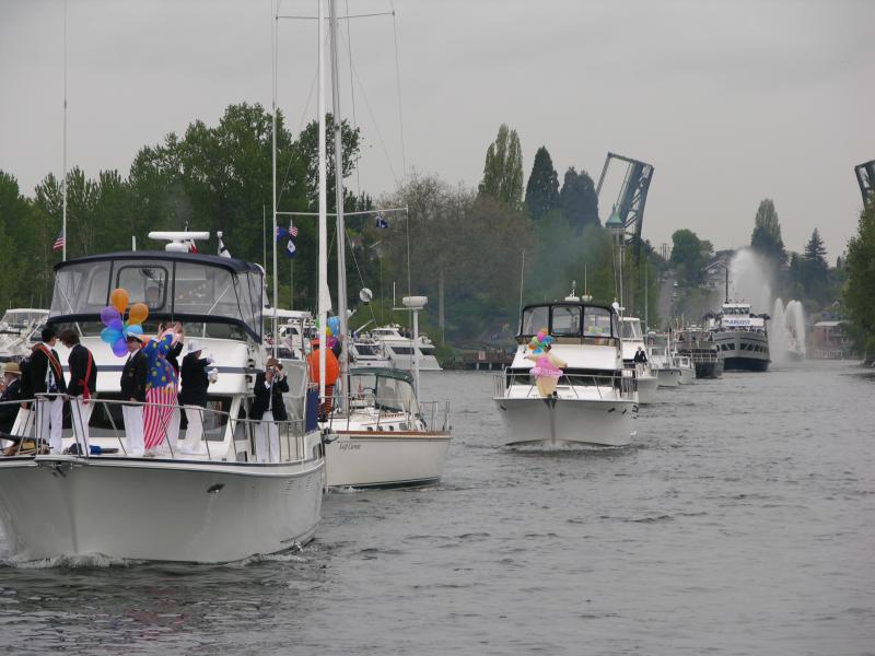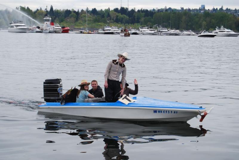 After three years of trying, we're just barely starting to "break in" with the Seattle Yacht Club's Opening Day Parade judges. They disqualified us from judging the first two years for spinning donuts before we got to the end of the parade route, but this year we maintained a semi-straight line, had some folks in our fleet with great costumes, and were rewarded with a Third Place trophy in our class.