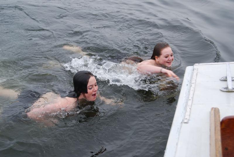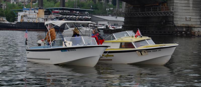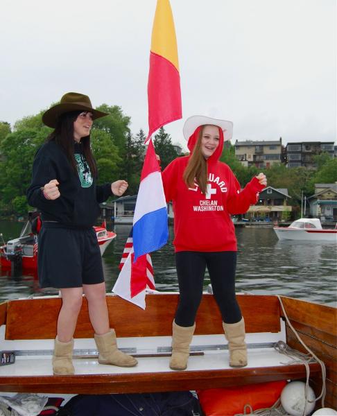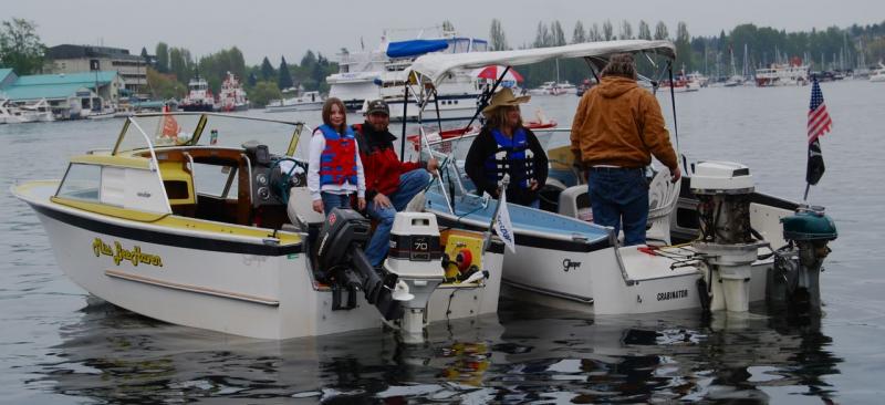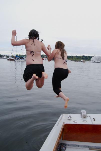 We ran our recently-acquired 27-foot, 1959 Luhrs down from Marrowstone on Friday, and just got back to Mystery Bay this afternoon (Sunday). Aboard for the parade were my son, Darren; his girlfriend Sam; Sam's daughter Carly and Carly's good buddy Rachel. The two teen-agers seemed to have a ball, and celebrated after the parade by jumping into Union Bay....brrrrr!