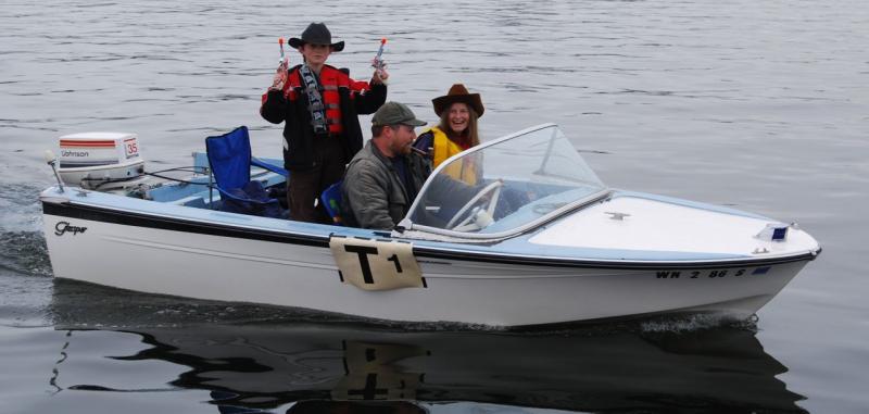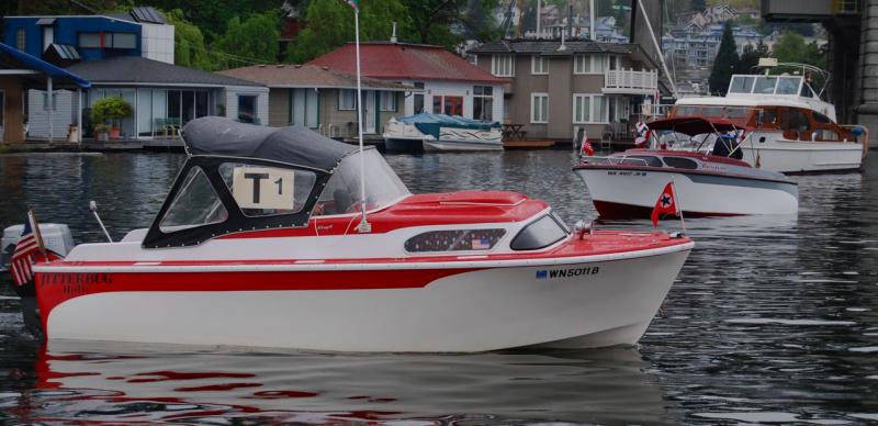 Anyhow, lousy weather reduced the size of our fleet somewhat, but not the enthusiasm or amount of fun had by all. Thanks to Chuck for picking up our boat numbers on Thursday; to Jay and Tara Giese for generously feeding everyone aboard their big Chris-Craft, Tabu, and to everyone who braved the clammy weather yesterday.
