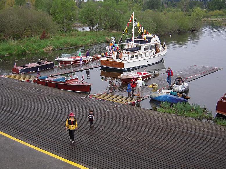 . Prior to the parade was very soggy, but the parade itself and following festivities at the UW Crewhouse were great. We pulled out at Sandpoint with Melanie, Mary, and the Davies about 4:00 and were in t-shirts it was so nice. By the time we hit Renton on the way home, the sky opened (literally) and flooded us. I used the shop vac when I got home and sucked 12 gallons of water out of the boat (it was dry when we left the boat launch!) We had a great day overall and look forward to seeing old friends and meeting some new ones at the upcoming events!