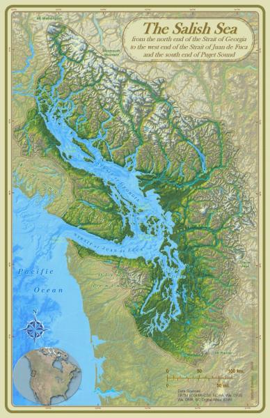 If you do a Google search for Salish Sea, you'll find the attached map, denoting the boundaries of the newly-named labryinth of waterways.