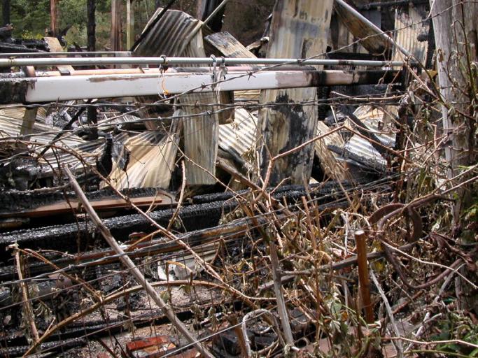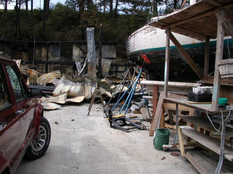 These photos are all that is left of Art Lohrey's classic boat restoration shop on San Juan Island. The fire started in the wee hours of Sunday morning. The shop and six classic wood boats were totally destroyed.